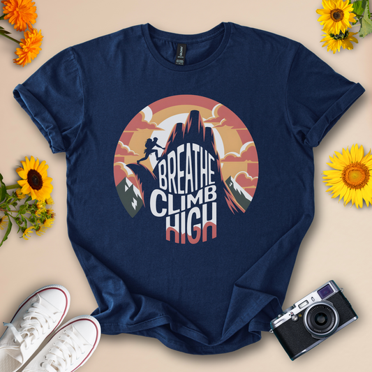 Breathe Climb High Adventure T-Shirt For Outdoor Enthusiasts | Hiking Nature Tee